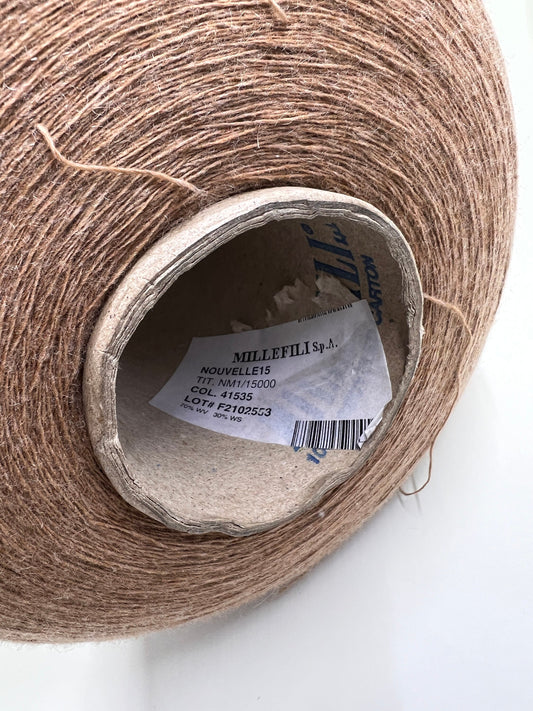Merino Yarn 70%, Casmere Yarn 30%, Nm 1/15000, MilleFili Nouvelle, color-Brown. Per 100 gr