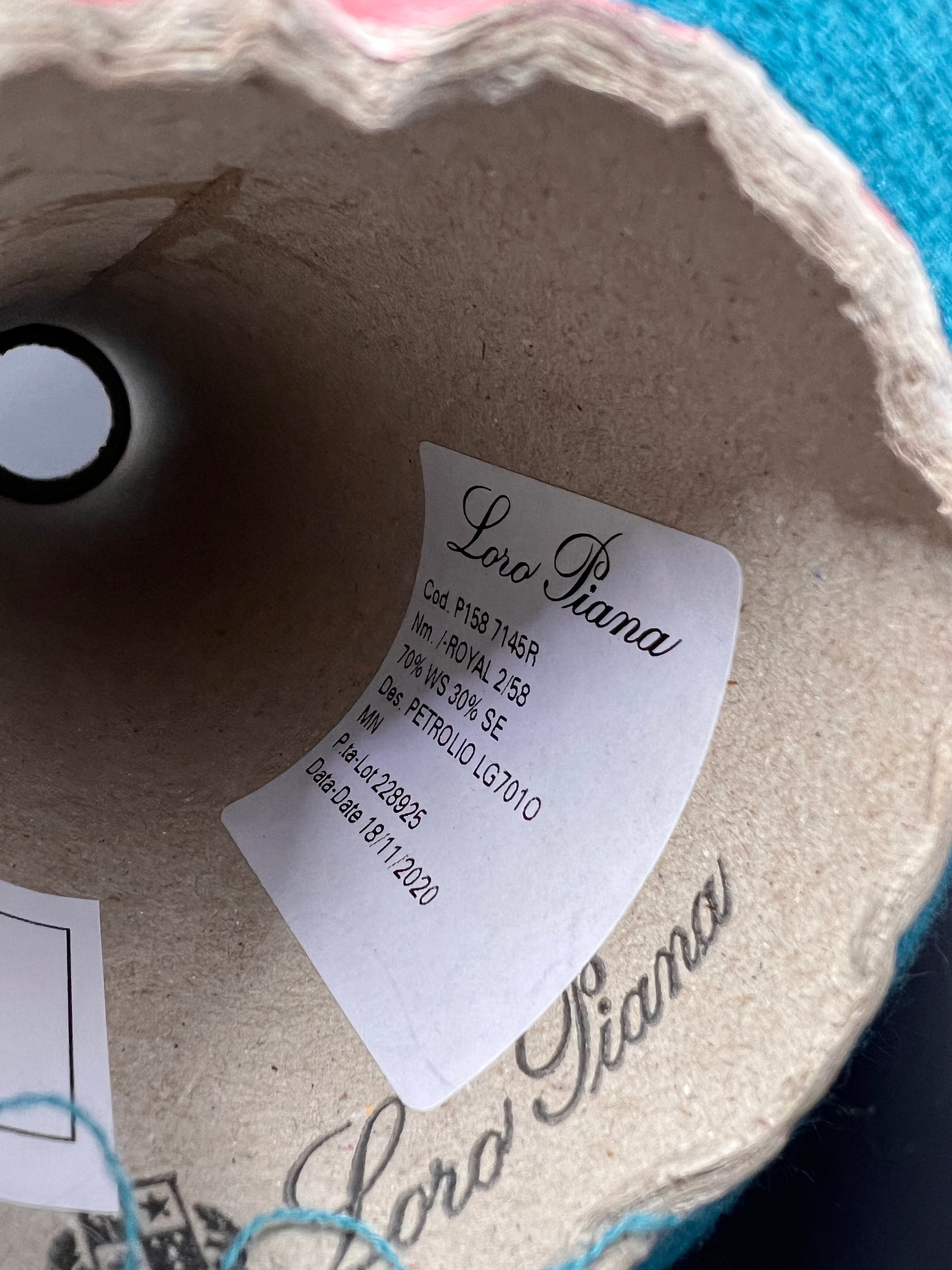 Cashmere 70%, SE 30%,Royal 2/58, Loro Piana-P158 7145R, Color Petrolio, per 100 gr. Italian Fine Yarn, yarn on cone, Hand Knitting, Machine Knitting