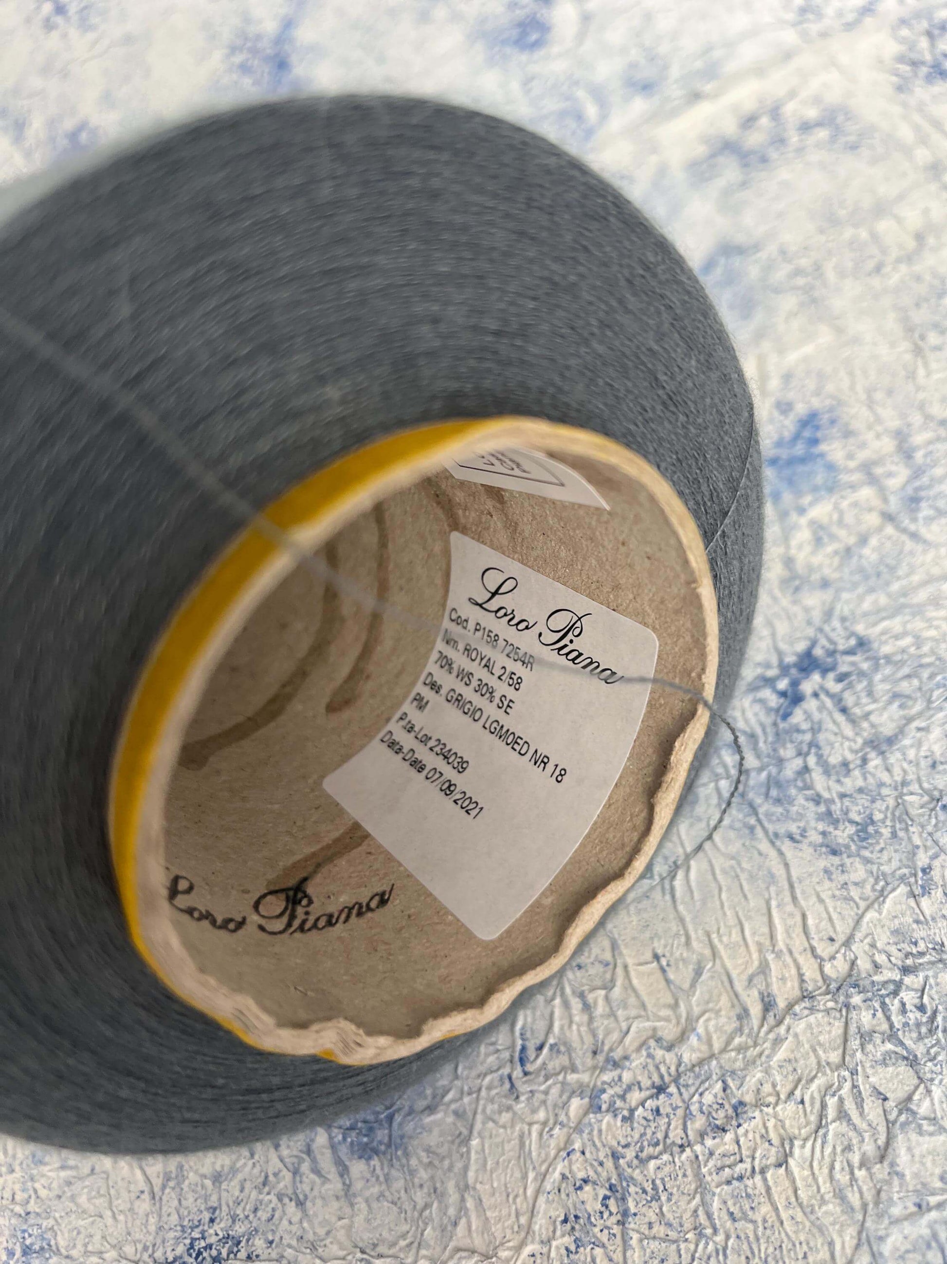 Cashmere 70% & Silk 30% Yarn on Cone,Loro Piana-Royal, Color Grigio.Per 100 gr