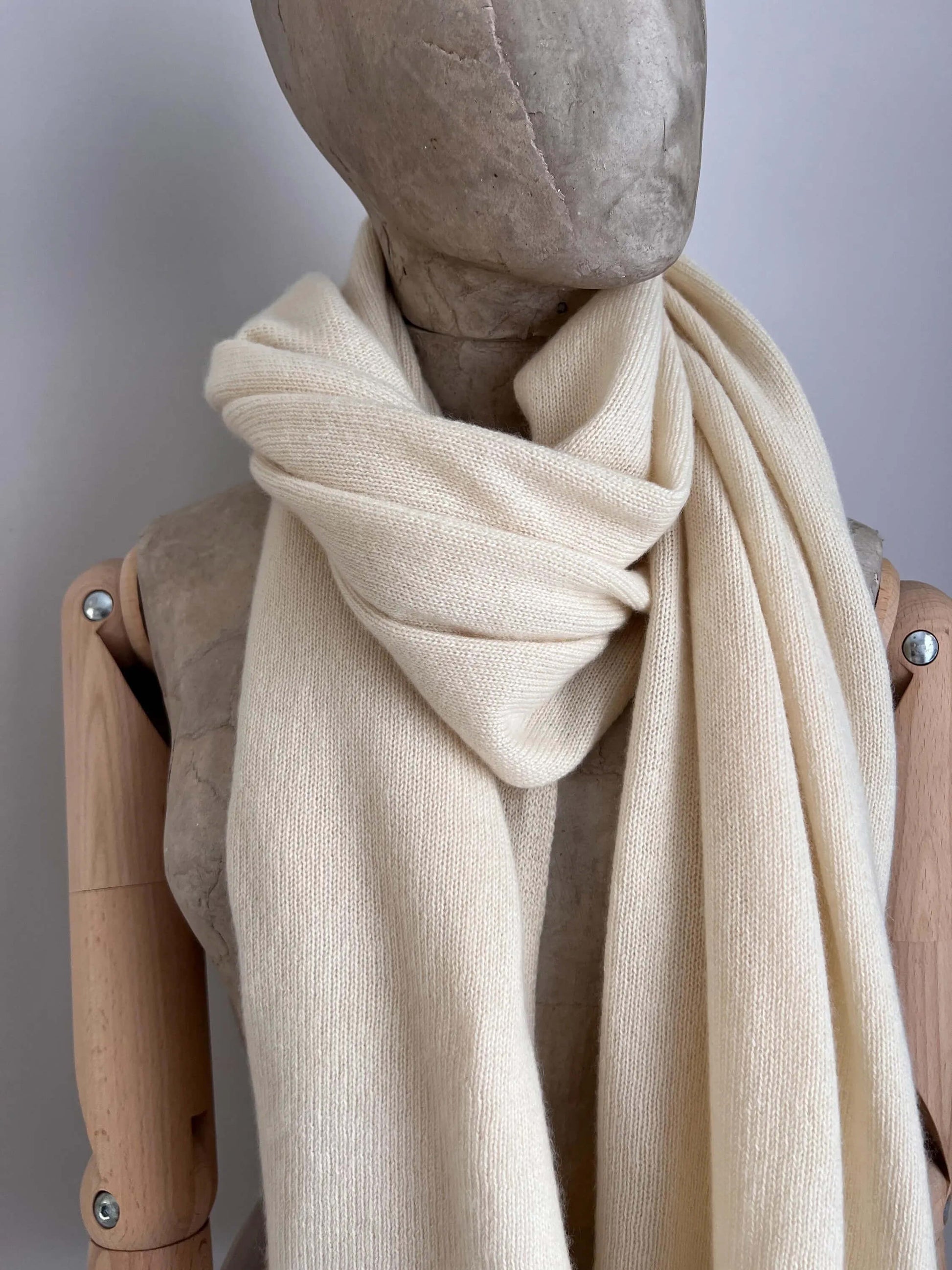 Color White - 100% Large Pure handmade cashmere scarf.