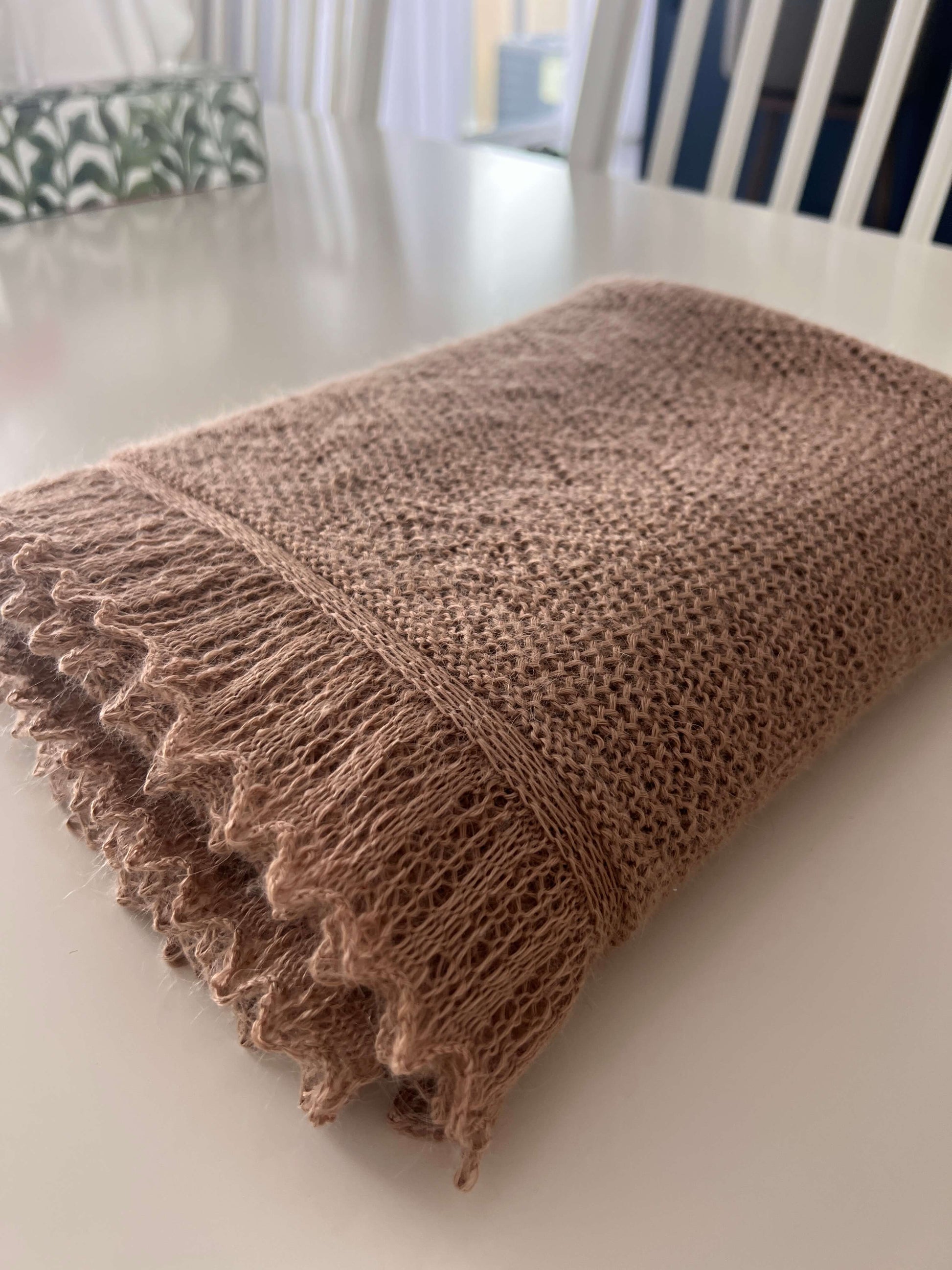 The blanket is made from 100% Baby Alpaca yarn.