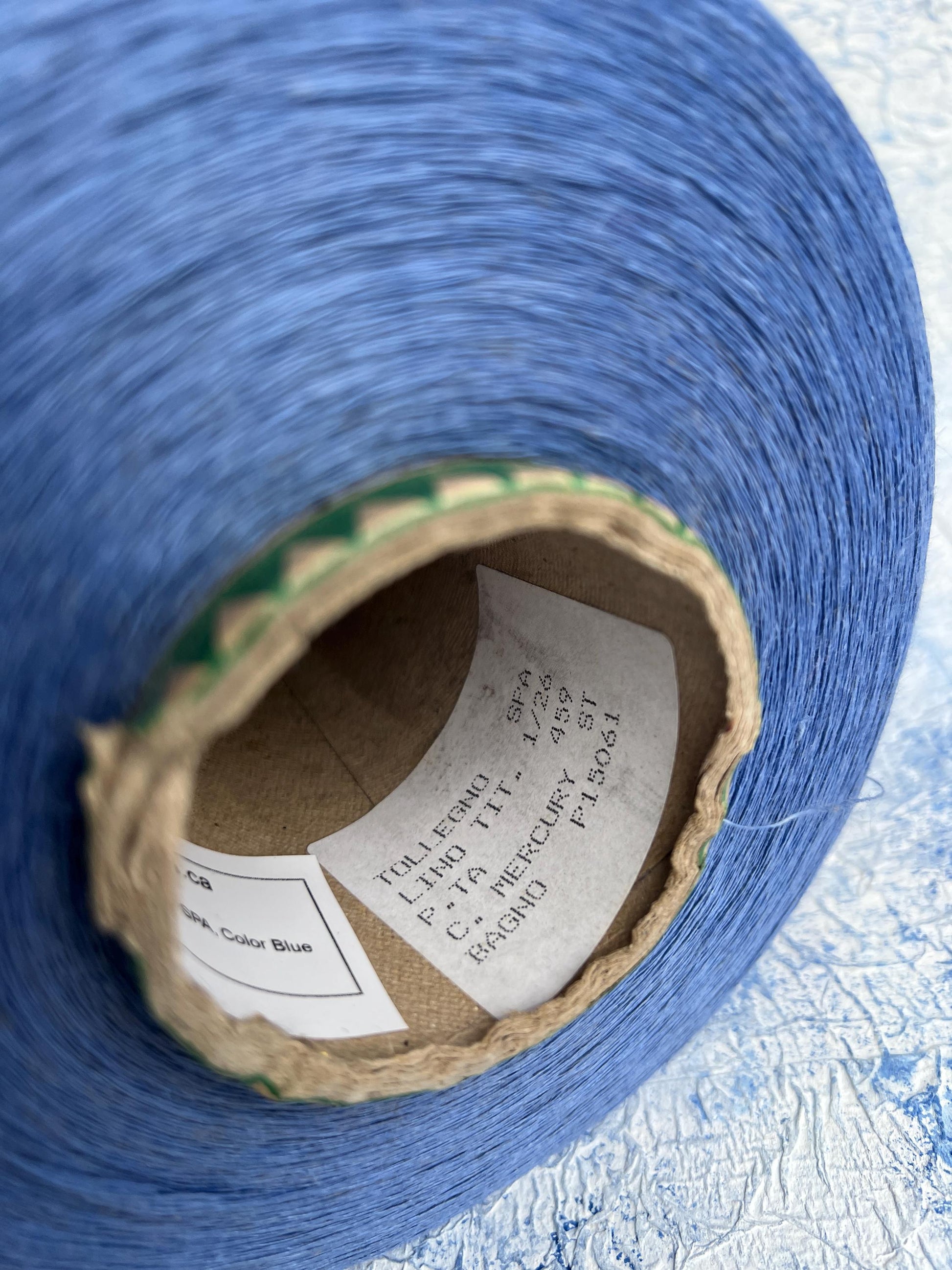 Linen yarn 100%, Nm 1/26, Tollegno SPA, Color Blue. Per 100 gr