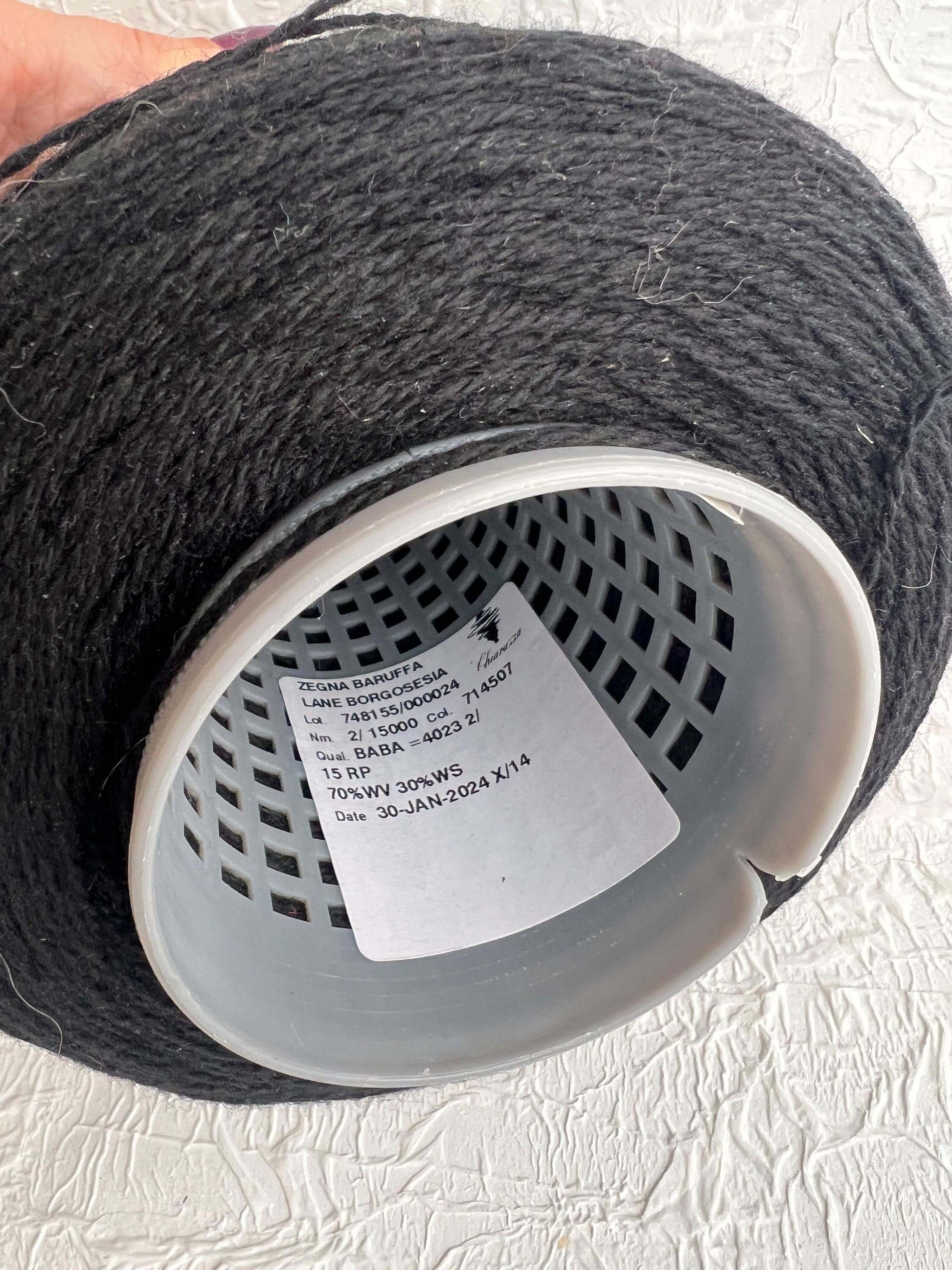 Merino yarn 70%, Cashmere yarn 30%, Yarn on cone, Yarn for knitting, Black.Per 100 gr