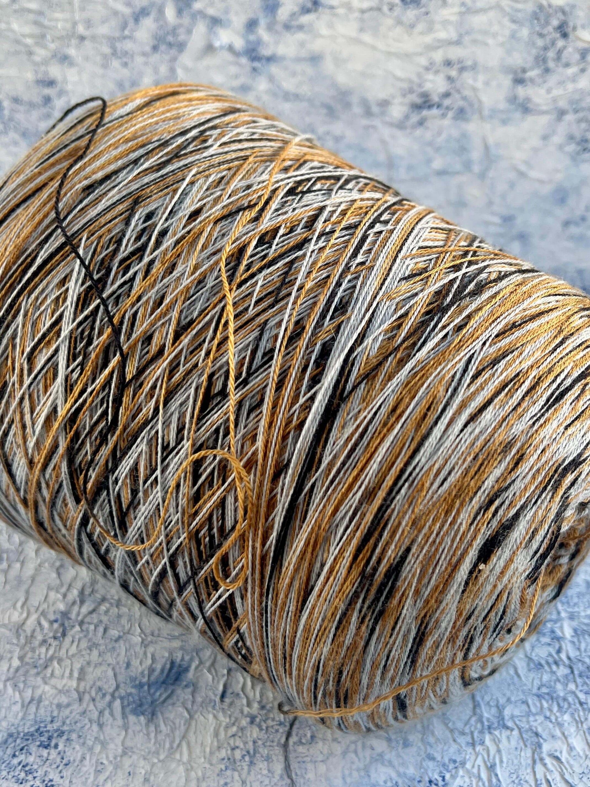 Merino yarn 100%, Missoni yarn on Cone. Black&White&Gold. Per 100 rg