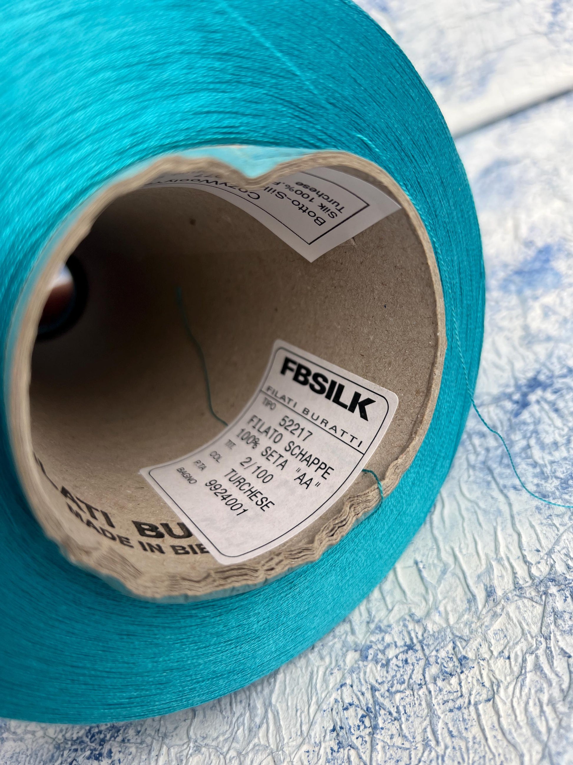 Silk yarn 100%,Yarn for knitting or Weaving,Color Turchese.Per 100 gr