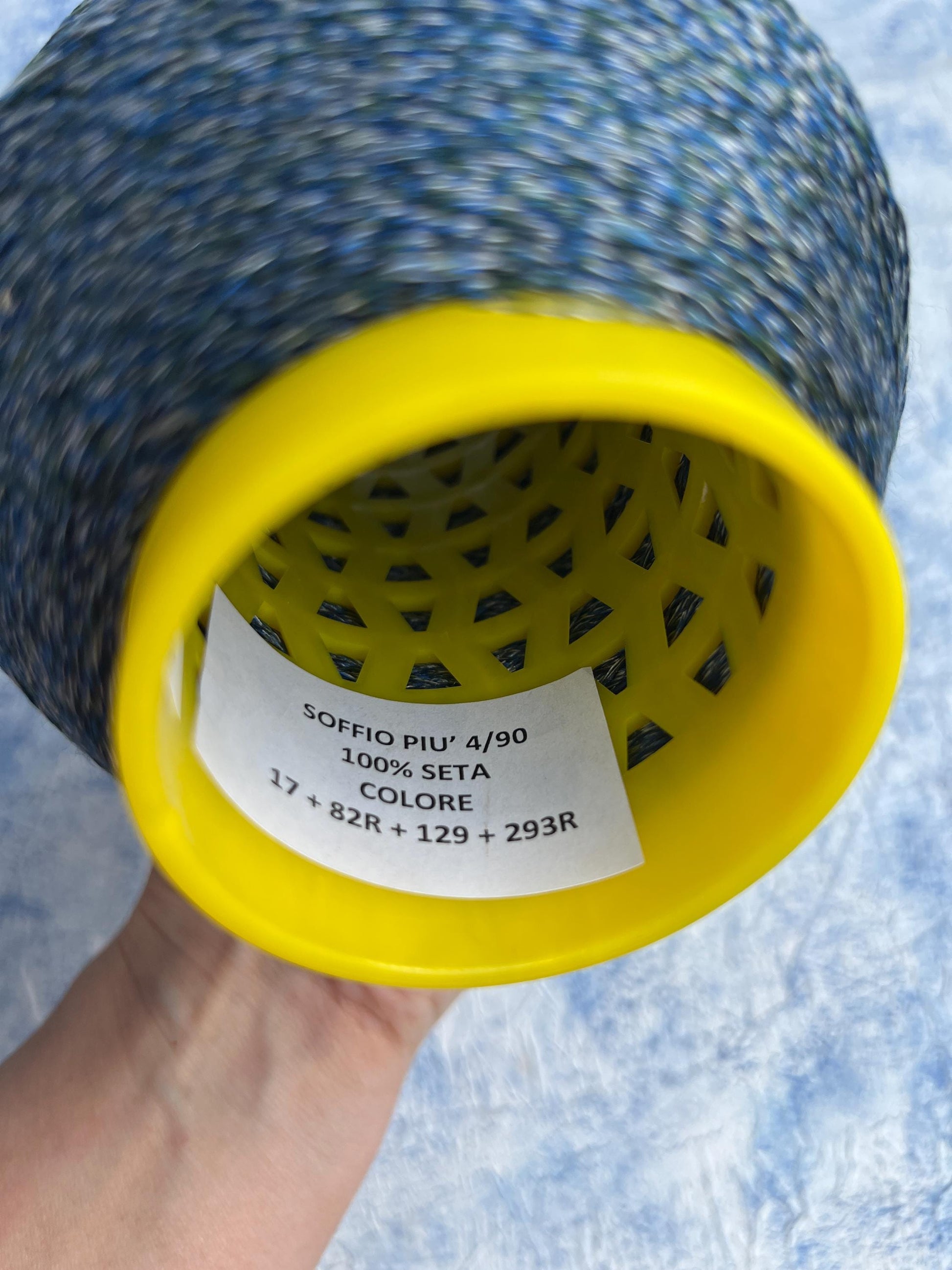 Silk yarn 100%, Soffio,Sesia yarn, Color Blue/White. Per 100 gr