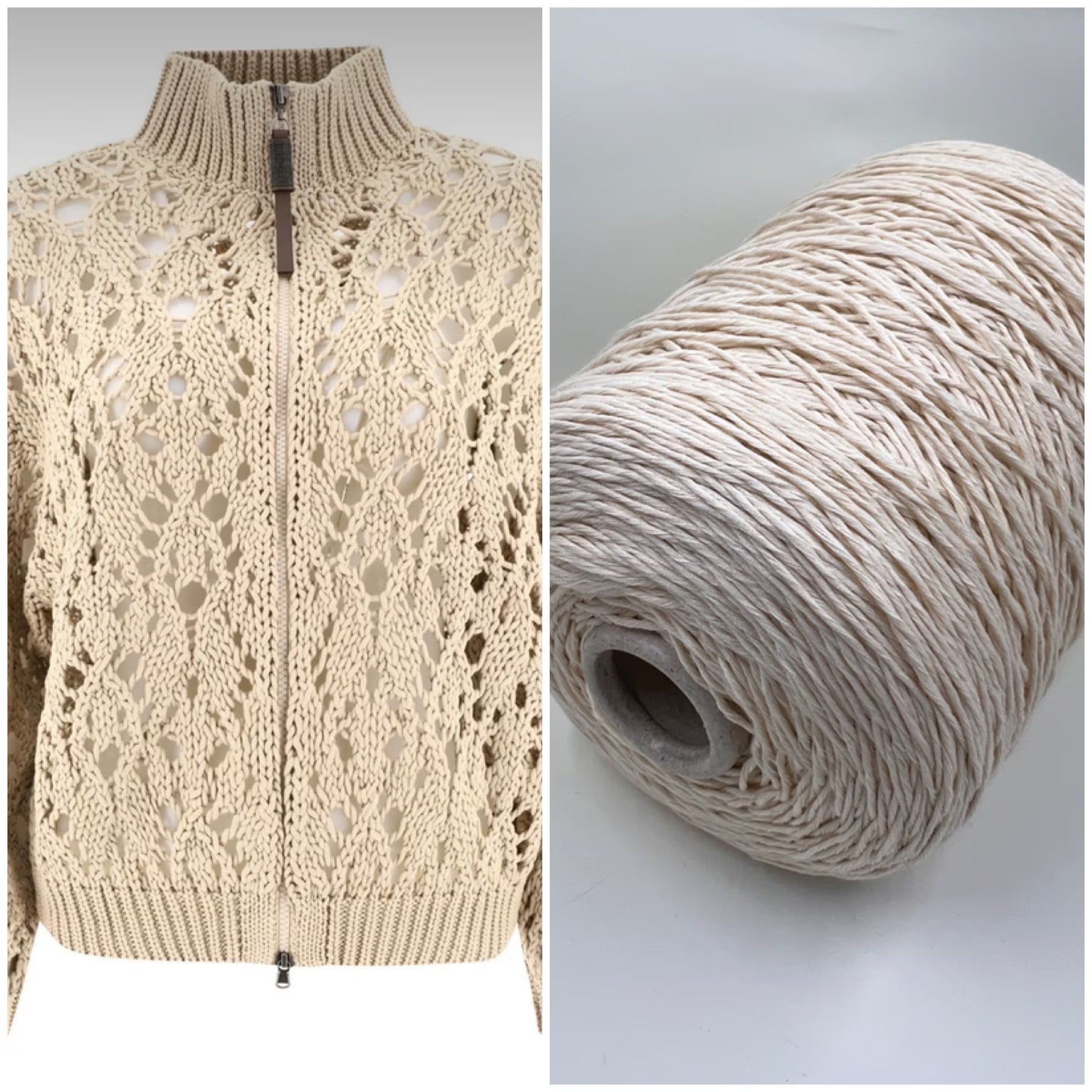 Cotton yarn on cone, 100% Cotton - 280m/100g (306 yards/3.52oz) - Color Beige, Machine Knitting, Hand Knitting, Summer yarn