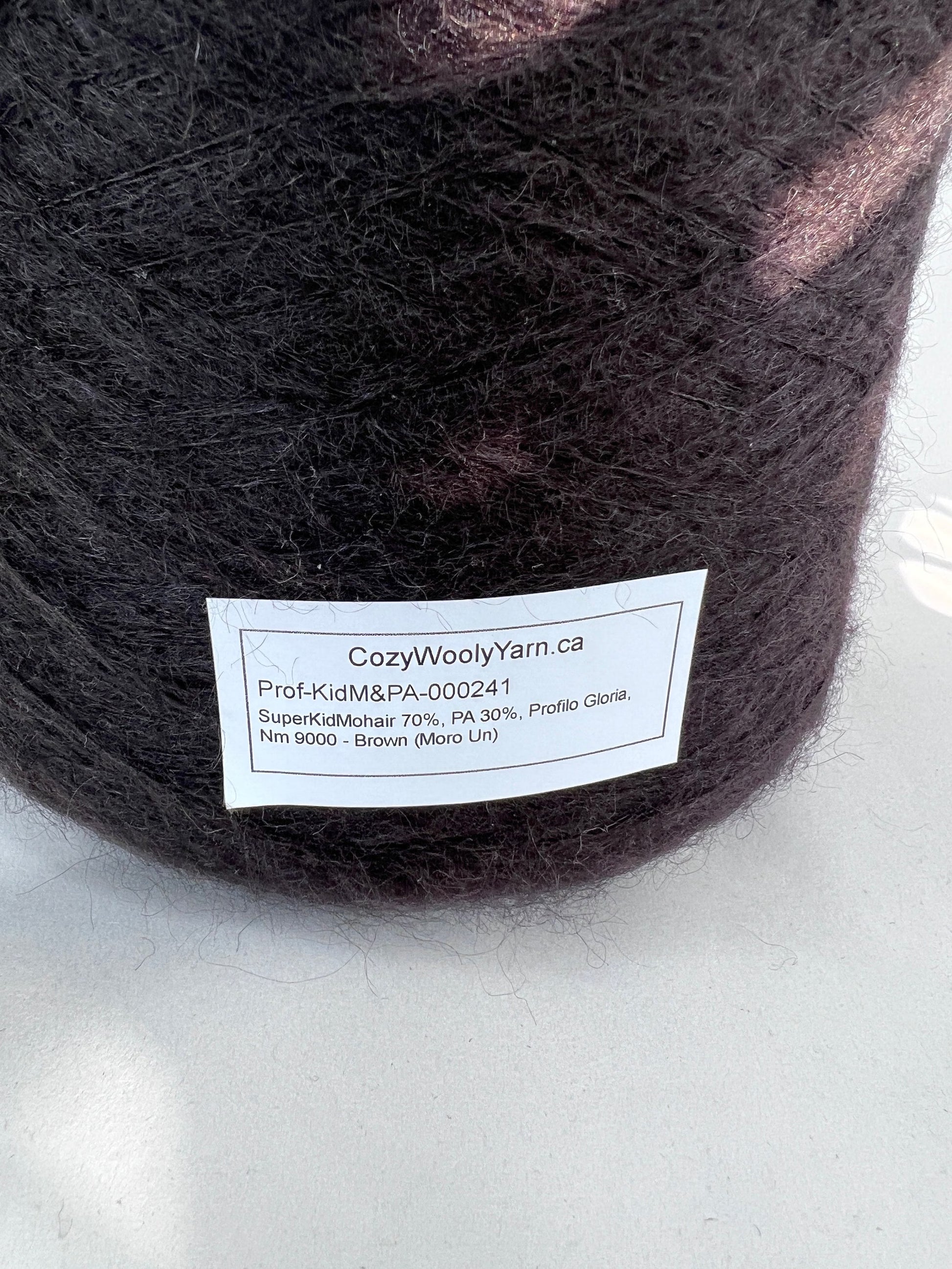 Super Kid Mohair Yarn 70%, PA Yarn 30%, Yarn on Cone. Brown (Moro Un), per 100 gr