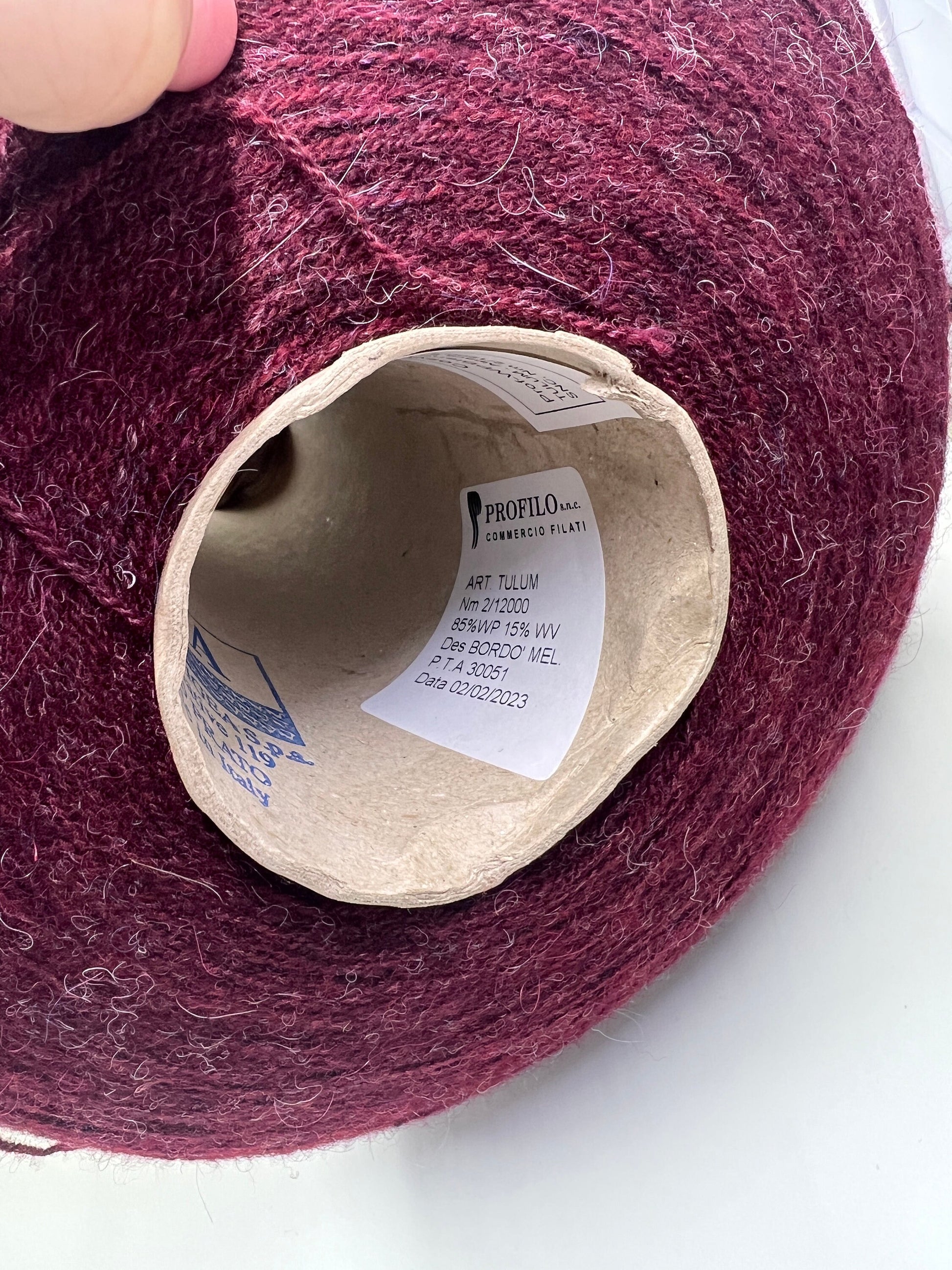 TULUM Alpaca Yarn, Merino wool Yarn, Yarn on Cone, Color Bordo Mel. Prof-WPBlend-000493